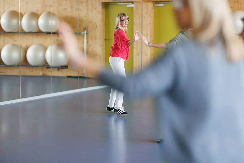 Mit Everdance® werden die Gelenke mobilisiert, der Kreislauf angeregt und ganz nebenbei werden auch das Gleichgewicht, die Koordination und die Beweglichkeit gefördert. Studien haben gezeigt, dass mit regelmässigem Tanztraining die Sturzgefahr markant reduziert werden kann. Da es für jeden Schritt verschiedene Optionen gibt, kann das Gleichgewicht kontinuierlich verbessert werden. Du tanzt allein und doch in der Gruppe.